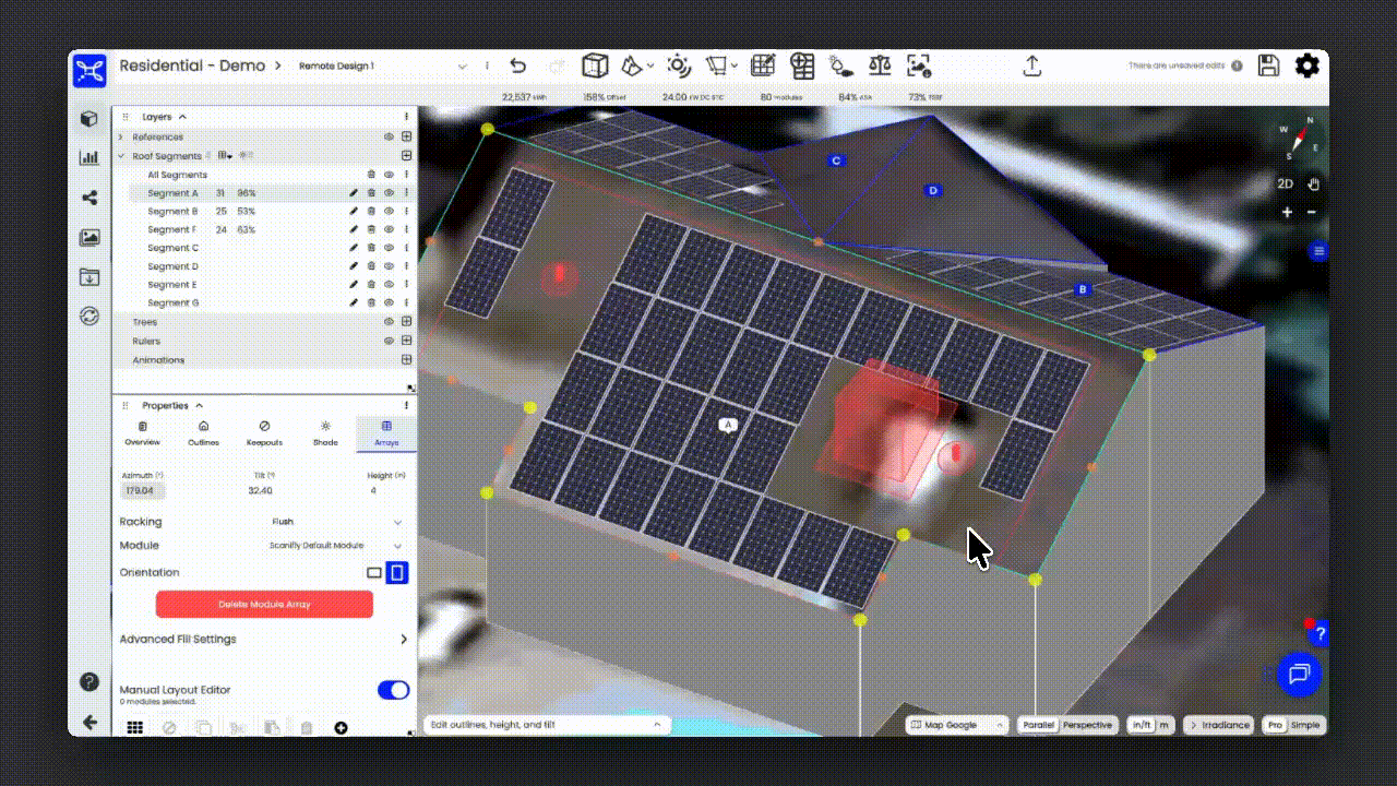 What It Is: Visual indicators now show when modules are placed incorrectly—in fire setback zones, on top of each other, or in keepout areas. Red means it really can’t work. Orange means it’s not recommended.