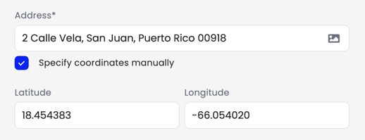 Why It Matters: A street address is an obvious starting point in urban and suburban areas, but can be difficult to identify in rural locations, on islands (like Puerto Rico), or for new construction sites. This makes it easier to pinpoint the exact location without the software defaulting to the wrong property. Especially helpful when satellite imagery is poor or addresses don’t exist yet.