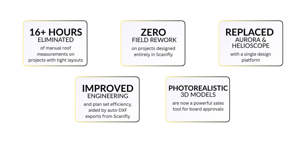 Before finalizing designs, field teams spent hours on rooftops with tape measures trying to capture precise dimensions and identify obstructions.